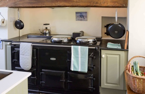 Discover Oldwood Cottage, a charming 17th-century house boasting heaps of original features and beautiful woodwork throughout. Step into the spacious farmhouse kitchen equipped with an AGA stove and all the mod cons. Perfect for family gatherings, gather around the dining table and enjoy meals with the wood burner roaring. Next, retire into the cosy lounge to a second wood burner and movie nights on the smart TV. On the way, you'll pass a glass tile over the cottage's old well!