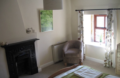 The larger bedroom is the Master Bedroom has a super king sized bed with new wardrobe,cupboards, drawers and bedside tables with new lamps. The room has an old fashioned feature fireplace and mantlepiece (for decorative purposes only) as well as comfortable chairs.