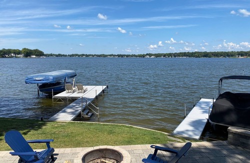 Whether you enjoy fishing, water-sports, wild-life, shopping, apple picking or just getting away from it all you will love our home in Southwest Michigan. Our house is mainly suited to family vacations. The house is situated on a shady tree-lined lot with a very gentle slope to water (great for kids). A 30' dock and a 40' dock with a large platform are included for your use. The 40' dock has steps into the water for easy access to a sandy bottom swim area (1 foot deep at bottom of stairs). You'll love the spacious setting and wide open views of the entire lake.