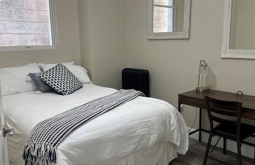 Amenities include a full kitchen with all utensils, in-unit laundry, steamer, games and Wi-Fi. This is a 2 bedroom unit, with a queen in one bedroom and a full in the second bedroom, unit is well suited for two people or solo travelers. Pictures have not been updated, however blinds and curtains have been installed for privacy while enjoying the natural light this until boasts.
