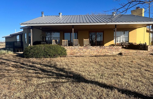 This cozy lodge is true to its Texas roots with a stone fireplace and rustic décor. The ranch is located a few miles east of Clarendon, Texas and the roads leading to it are not paved so a truck or SUV with 4-wheel drive is recommended.