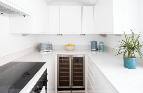 The home comprises of 3 floors. The ground floor consists of the living room, dining room, kitchen and outdoor courtyard. The kitchen contains a washer/dryer, wine fridge and dishwasher for guests to use. The dining room has an extendable table so will be large enough to seat 6 when extended. There is a half bath on the ground floor.