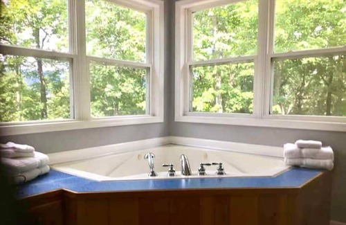 Enjoy a Stunning Mountain View from this beautiful, secluded Chalet in the Smokey's, but it’s only minutes to town. Gather round on the firepit deck on those chilly mountain evenings. Relax In the hot tub under the stars. Large open concept with lofted wooden ceilings. Large wrap around deck with 180 views. Gas Grill, eat inside or out. All essential Kitchen supplies provided. Just bring your own food to cook. Plenty of parking.