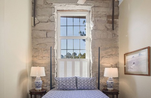 28 night minimum - Our 1 bedroom apartment sits on the banks of the beautiful Neuse River and Greenway with miles of biking and walking trails, fishing and canoeing, or sitting and enjoying mother nature. Our beautiful apartment has modern features and also retains it's original unique beauty from 1850, with thick granite walls. Parks and lakes are nearby, great restaurants, local breweries and shopping are also near.
