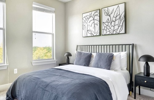 This furnished apartment is located in Mueller, a contemporary planned community just east of the University of Texas-Austin campus. The neighborhood is home to newer mixed-use developments and office blocks as well as many bars and restaurants. Families love The Thinkery, a children’s museum that features activities geared towards kids of all ages. Mueller is also home to 30-acre Mueller Lake Park, the perfect place for a jog after work or a picnic on the weekend on the banks of the lake. The park also hosts a farmer’s market on Sundays next to a splash pad and sand volleyball courts.