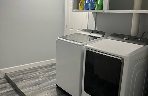 - There is a laundry room behind the kitchen with a washer and a dryer. We have included laundry detergent and softener for your convenience.