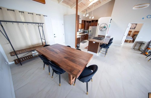 The enormous gourmet Kitchen/Living Room/Dining Room has every amenity a chef could want. The kitchen is fully equipped with stainless steel appliances, a stove, pots, pans, and kitchen utensils. There is a breakfast bar as well as a dining table that seats 8 people comfortably. The living room has 3 sofas, easy to take 1 adult each. For an additional charge, we can provide up to 2 air mattresses with bedding.