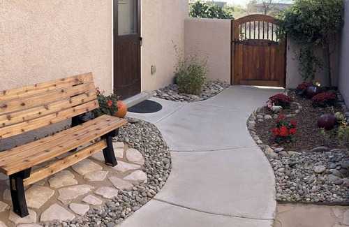 Private room with separate entrance. Beautiful courtyard. This property is a real find for the business traveler. Shower, king size bed, tv, wireless internet, small refrigerator, Microwave, no stove, walk-in closet, nearby shopping and Casinos. Close to Balloon Fiesta Park. Close to the train to Santa Fe.