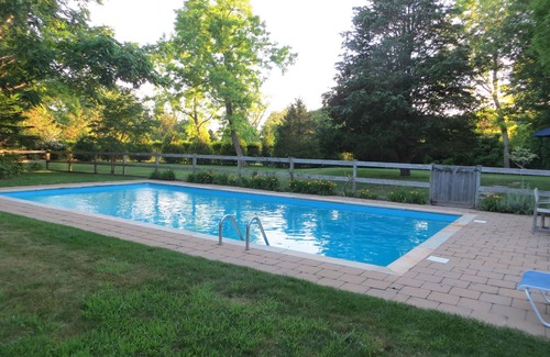 Located in Sagaponack, this home is ideal for an easygoing vacation with a swimming pool, tennis court and a large lawn for playing outdoor games. The South-facing deck has a grill and table for outdoor dining and overlooks the lawn. There is a light-filled open living room and dining area with high ceilings, and a separate kitchen. Two bedrooms are on the first floor. One has a queen bed and the other has twin beds. The third bedroom on the second floor has a queen bed. Each bedroom has its own bathroom. It is a quick 10-12 minute drive to Sagg Main Beach and Bridgehampton main street and a 15 minute drive to Sag Harbor and East Hampton. Poxabogue public golf course and driving range is a few minutes away. Our tennis court is hard surface (very usable and fun to have in your back yard, but well worn with a few cracks). A variety of children's and adults bikes are available in the basement. Please be sure to look carefully at the Amenities, Rooms, and Rule & Policies descriptions for more specific details. For bookings less than 30 days a mandatory Suffolk County tax of 5.5% will be charged. A minimum rental of 2 weeks is required during the summer and a minimum of a month off-season. IMPORTANT NOTE: Heat and electricity are additional for off-season renters per arrangement with owner. Utilities are included with summer rentals. For stays one month or longer, renters are expected to pay for our housekeeper to clean once a month.