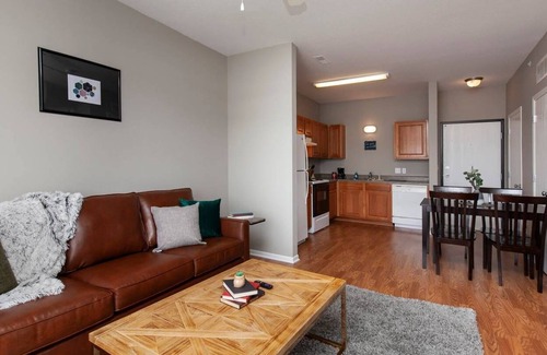 We welcome you to our spacious West Ames apartment. Some highlights include being close to Iowa State University (Go Cyclones), a fully-equipped kitchen for the inner chef in you, and a state-of-the-art fitness center to get your workout in. Enjoy a good night’s sleep with our comfortable beds. It’s the perfect destination for a weekend getaway, business trip, or family gathering. This centrally located property serves as a local community fixture, housing undergrad and grad students alike, as well as out-of-town travelers.