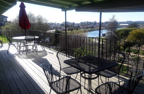 This house is perfect for a family retreat. The 35 foot long deck offers amazing views, a BBQ, and tables and chairs for outdoor dining. The dining room/great room has a large table with seating for 8 but can easily hold 10. A large supply of games and puzzles offers more family fun time around the table. Walk downstairs to a huge 'hangout' room that boasts a large flat screen TV with satellite and DVD. There is a love seat, easy chair, sofa/sleeper, and papazan chair for comfortable seating. There are also extra sleeping mats and bean bag chairs in the closets.