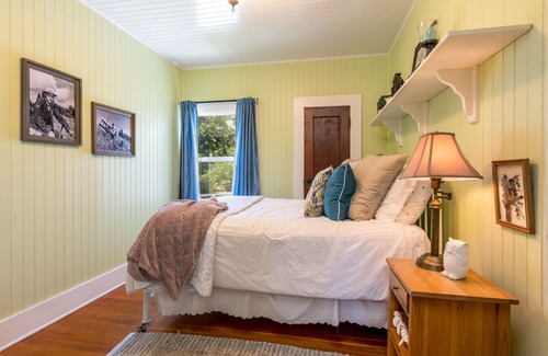 This home was built in 1927 by my Great Grandparents. Its old fashion charm and beautiful views of the pond and vineyards make this home ready for you to relax. Picnic under the shade of the walnut trees and watch the wildlife in the pond.