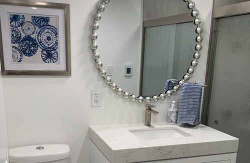 ✔ En Suite Bathroom - Heated Floors! Walk-in Shower with Rain Shower Head, Body Jets Spray Wand, Vanity, Hair Dryer