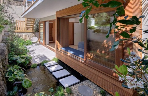 The master bedroom is a wonderful private retreat overlooking the north-facing garden with a pond and outdoor shower. A perfect place for some morning yoga. It also has a walk-through closet area and lavish marble bathroom with a separate shower large tub and underfloor heated floors and towel rail.