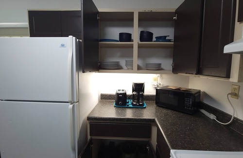 Kids like the catch-and-release pond! The spacious condo-style unit offers 1 bedroom, 1 bath, full kitchen, large sectional, laundry. Plenty of parking space. Your lakeside escape awaits!