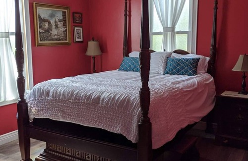 Great old porch with a view of the water. 1/2 mile to fishing pier and park. Very quiet and friendly little town. Large ole four-bedroom house with lots of space for your group to have room to spread out.