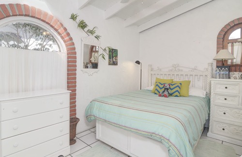 This quaint home has the genuine ambiance of Mexico, thanks to the Spanish-style architecture and rustic décor that give the home a warm and inviting feel. Each room is full of color and character, with gorgeous exposed wood and brick, high ceilings, Mexican furnishings, and lots of natural light. It’s easy to fall in love with this home instantly, as it hosts all of the comforts of your own home but with the breezy atmosphere of a relaxing vacation.Step outside onto the terrace to feel the ocean breeze on your face while sunbathing on one of two padded lounge chairs and an umbrella overhead, or grilling up an evening meal.