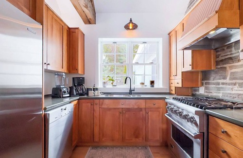 The kitchen is a space you’ll truly enjoy. It’s fully stocked with everything you need to prepare your favorite meals, featuring a Viking gas stove and a central island so friends and family can gather around—whether they’re lending a hand or simply keeping you company. One of my favorite things to do is fire up the wood-fired pizza oven and make dinner an experience in itself.