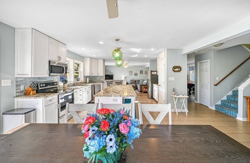 Enjoy visits with family and friends in the open concept first floor that extends to a wide deck, patio and fire pit close to water's edge. The WiFi, pool table, satellite TV, games, DVDs and books offer something for everyone.