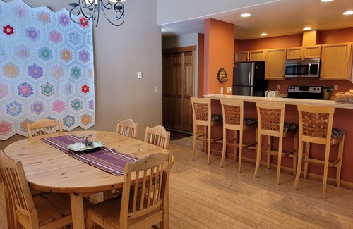 Conveniently located within easy walking distance of the grocery store and select restaurants, and about 3/4 mile from the groomed cross-country ski trails. This pet-friendly place has a maximum of 2 pets. Pets must be kept on a leash at all times within the condominium complex. The single-car garage is available for guest use.There is Joola compact tennis table for guests to use during their stay