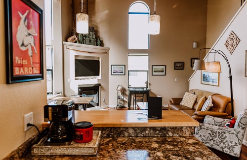 Located in a safe and secure building, this unit has an open floor plan that is sure to make you feel at home. Featuring 20-foot ceilings, tall bay windows with great bay view, a fireplace to keep you cozy, a dining area, a full kitchen and much more. Also including a work station, a large flat screen TV, and plenty of seating giving you options to relax and enjoy the view. Up the stairway leads you to the queen bedroom and a full bath. Pull out couch in living room. If you’re traveling with more than four guests we have an additional cot available. The decor is warm and cozy with some vintage nautical touches. Making this a great choice for family vacations or work-related getaways.