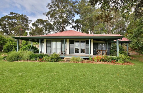 Borrowdale is a cosy ex-farm manager's cottage conveniently located less than five minutes from the township of Berry and ten minutes from Seven Mile Beach. Nestled on 25 acres of farmland and perched high on Moeyan Hill, it offers great privacy with breathtaking views of the escarpment north to Saddleback Mountain and sweeping rural countryside stretching east to Gerroa and the sea.