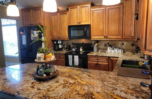 Experience Orlando's attractions in this 3-bedroom Pool Home that's 20 min from most all attractions and 45 from the closest beach. (2 on the Atlantic and 1 on the Gulf of Mexico) . Located in a small neighborhood off the 408/417 making it easy to get just about anywhere in Central Florida within 20 minutes. Close to UCF, Full Sail and Valencia College East. The pool is surrounded by lush green foliage with an array of over 200 plants and flowers and has full outdoor kitchen. The home is a 1672 sqft, 3 Bedroom, 2 Full bath with the master being an ensuite and goes to the pool. Each bedroom features a comfortable queen bed and flat screen TV. The home has a familyroom open to the fully equiped kitchen with X-tra large island. Laundryroom with front loading washer and dryer, a formal livingroom and diningroom. The patio is covered and has large acacia wood table that seats 6. The house is equipped with all the essentials, including an iron, AC, hair dryer, WiFi, and heating. Come enjoy everything Orlando and our home has to offer.