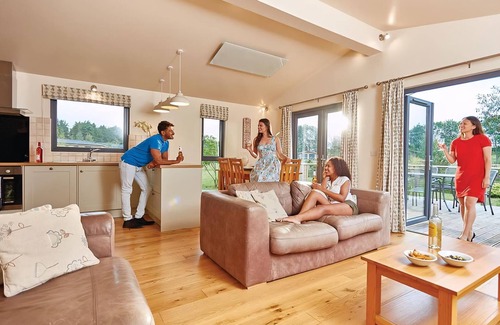 Boutique and spacious luxury lodge, perfect for a romantic escape. This lodge boasts one master double with en suite bathroom with bath and separate shower. Light and spacious open-plan living/dining area with shaker style kitchen and doors leading to a patio with outdoor hot tub.