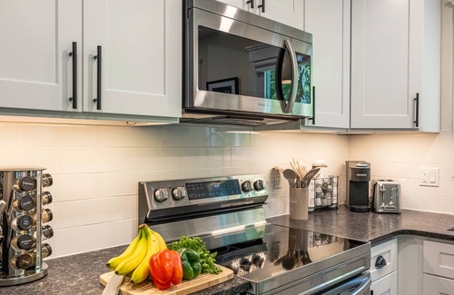 The fully equipped kitchen has everything you need to whip up a delicious meal – including modern appliances, cookware, and a homey dining area for enjoying meals together. Prefer to dine outdoors? Fire up the propane gas grill and enjoy your meals on the deck for an al fresco feast!