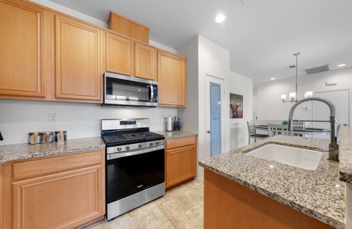 Brand new 2 bedroom & 2 bath townhouse in a beautiful neighborhood! Everything in the house is brand new from the appliances to the furniture. The place is fully stocked with all the necessities you need. Also included is an attached garage with free EV charging. 70’ smart TV and games available. There are tons of amenities included such as pools, parks, gym & clubhouse.