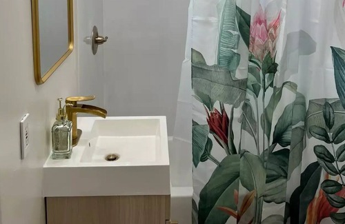Fully furnished entire unit with a 1 bedroom which has a king size comfortable bed, spacious living spaces, smart tv ready for streaming with high quality fast internet speed. Sofa sleeper to accommodate any guests. Plenty of natural lighting throughout the home. Desk work station in the area for remote work in a quiet setting. Remodeled full size shower bathroom. New full kitchen with stovetop, new cabinets with plenty of storage space. Furnished with pots, pans, keurig, dishes, cooking essentials, and many more kitchen items. Equipped with laundry room including full sized washer & dryer.