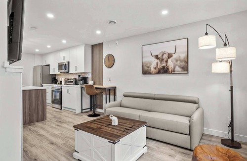 Brand New - Modern Rocky Mt Retreat by Banff has 2 Bedrooms , 2 Bathrooms, and max occupancy of 6 people. The minimum rental for this property is 1 nights, but this can change depending on the season you plan on staying. Previous guests have given good rated it, and VRBO labeled it a top-rated Apartment because of the excellent services rendered by the owner or manager of this Apartment, and has consistently provided great experiences for their guests. Most families or guests that use it recommend it to their friends and some of them are repeat guests. Apartment has a friendly neighborhood, and the Harvie Heights has interesting places to visit. If you want to learn more about the Apartment in Harvie Heights, such as places to visit and things to do nearby, you can check below to learn more.