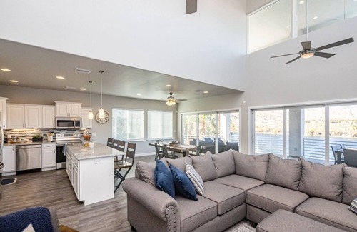 Experience River Life at its finest! Brand New Water Front Beauty. This house is furnished with new furnishings and everything you need to feel like you are at a 5 Star Resort. 4 oversized bedrooms with plenty of sleeping space. 2 Master bedrooms. One upstairs and One down. Another bedroom has direct access to hall bathroom. 4 full bathrooms. Fully equipped kitchen Walk down to ramp and hop on your watercraft. Launch once your entire trip! Convenient and located centrally. Minutes to Laughlin.