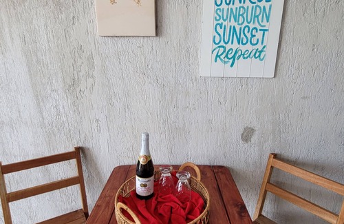 The Aztec , Relax in the largest of our 4 suites.. Wake up in a king bed next to your ocean view 9ft. tall triple sliding glass doors, Get a tan on the large balcony complete with outdoor tub and shower,. Amenities include wifi, new ac, 55 inch tv with firestick, large indoor shower, mini fridge with freezer, microwave, 55 inch tv, keypad door locks. Book a massage on the beach, rent a kayak, boogie board, fishing pole.
