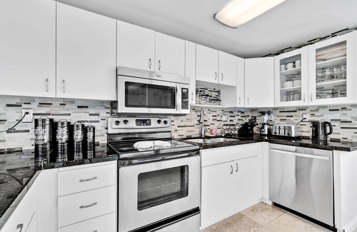 KITCHEN: Fully equipped, stove, dishwasher, oven, coffee maker, blender, toaster, cooking basics & flatware.