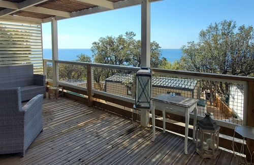 Bright cocoon with pool and sea view is located in Le Dramont. Bright cocoon with pool and sea view provides accommodation, featuring Air Conditioner, View, Ocean View, among other amenities. This Ski Chalet features Air Conditioner, View, Ocean View, to make your stay a comfortable one.