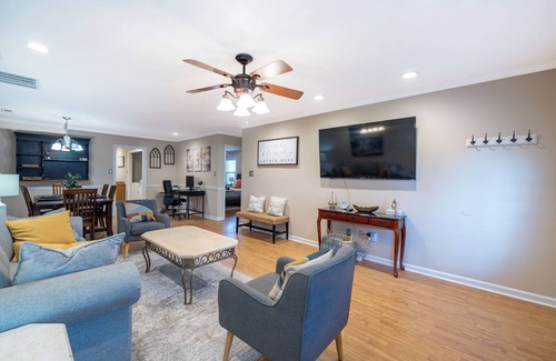 Fast Wi-Fi, Dedicated work space, 4k smart TVs, Covered Front Patio, Sunroom, full kitchen, free parking and laundry. Two bedrooms, two bathrooms. Daybed and sleeper sofa with queen mattress.