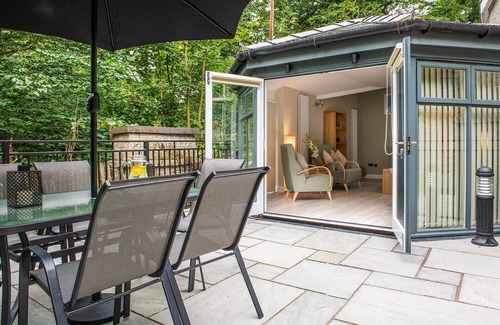 Bryntirion Loge is a wonderful holiday home, transformed from a beautiful former gatehouse at Parc y Faenol (Vaynol Park Estate). A grand and walled estated, the gatehouse was built in 1863, and retains the character and history in it's original parts, yet has been extended and modernised over the years to provide fabulous accommodation for up to 6 people. The grand and exquisite gated path up to the property is magnificent. And at the entrance to the lodge, the welcoming reception leads into a lovely, spacious and light-filled, dining room, ideal for enjoying some late-night dining or planning your way around the expansive region of North Wales. Leading off the dining room is the modern fitted kitchen with its exposed beams and granite worktops, with all mod cons required for a fantastic self-catering stay. There are two lounges, both facing the garden and woodland that lies beyond. The 'day lounge' is on the lower floor, and as the lodge is built on three levels, it has large french doors opening out onto the rear patio and outdoor seating and dining area. This in turn leads on down a few steps onto a more extensive patio and lawned area. The day lounge is again fabulously light and airy ideal for long relaxing mornings and breakfast on the patio, overlooking the small stream which runs by the cottage. The evening lounge is a few steps up from the kitchen and dining areas and has large comfortable chairs, a smart TV and DVD player, and a comfortable snug feeling that will wrap you up warm. There are three bedrooms (two double bedrooms and one twin). The master double with ensuite bathroom (bath and shower cubicle) and TV is on the lower ground floor along with the twin bedroom third WC and utility room with washing machine, drying rack and access to the rear patio and lawn. The third bedroom (double bed with TV and views to the woods) is on the upper ground floor next to the beautifully appointed shower room. Facilities include full central heating, fridge freezer, dishwasher, washing machine, microwave, coffee machine, induction hob, toaster, kettle, Wifi, two smart TVs and DVD players (one in each lounge), and two TVs (one in each double bedroom), cot and highchair, garden furniture for the fully enclosed patio and lawn. Bed linen and towels are supplied, there is WiFi and off-road parking for two cars. Y Felinheli lies between the Royal town of Caernarfon with its impressive castle to the West and the University city of Bangor to the East, Anglesey, Snowdonia and the whole of the North Coast are just a short drive away. Plas Menai National Watersport Centre and Greenwood family Park are both less than ten minutes' drive away, and for keen gardeners Crug Farm Plants is also close by. This is a beautiful spot to base yourself to experience all that North Wales has to offer, from Adventure to relaxation, fine dining to hillwalking, sailing to surfing and all that lies between.
