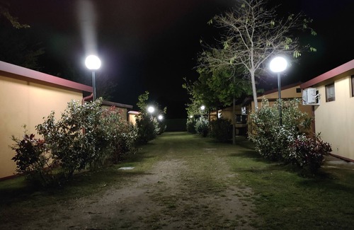 Bungalow with a single room sleeps 4 (a double bed and a bunk bed), a bathroom (sink, toilet and shower) kitchen with refrigerator, sink, gas hob, table with 4 chairs and outside table, dishes, glasses, cups and cutlery, there is no air conditioning, water, gas and sheets are included in the price, there are NO towels.