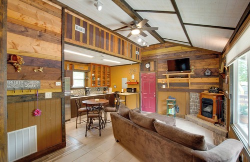 Escape the city buzz at ‘Byrd's Nest’ — a vacation rental in Odessa. In addition to its peaceful setting just steps from Lake Lafayette, this charming 2-bedroom, 1-bath cabin offers easy access to local hot spots like Historic Downtown Odessa, Powell Gardens, I-70 Speedway, and more. When you’re not out exploring, be sure to spend some time around the fire pit or head inside to enjoy a relaxing game night.