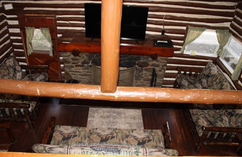 3 private bedrooms main level- 1 Queen Log bed and 2 Full Log beds,