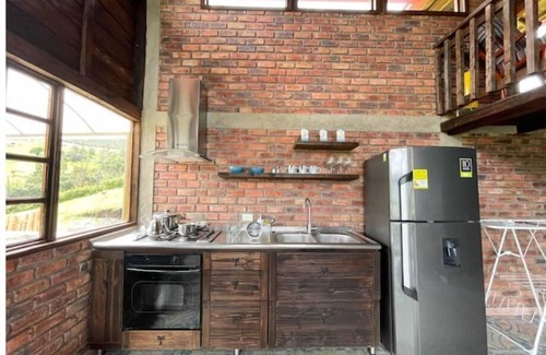 This rustic cabin-style chalet is located in Santa Rosa de Viterbo, an area with various activities such as hiking, buggy rentals, paragliding, rock climbing, local restaurants, and nearby trails that will allow you to go for walks, among other options. It provides a unique stay to enjoy the views of Boyacá in a peaceful and elegant setting.