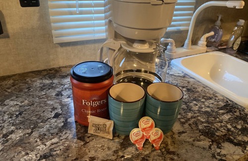 Nestled between the Ozarks and Ouachita Forests, come and enjoy a quiet, private camping experience surrounded by a beautiful wooded landscape, natural wildlife, plus a large pond. Located in the perfect location close to many popular attractions in the natural state. The Keystone Hideout can sleep up to 4 with a full size bed, twin size bunks, and a dinette that seats four. The camper is well equipped with a minifridge, 2 burner stove top, microwave, and coffee maker.