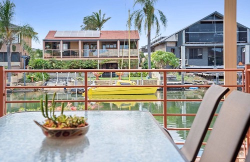Outside, the property is a true oasis. The spacious deck overlooks the canals and is the perfect spot to enjoy the tranquil surroundings.