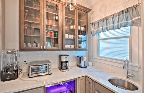 Constructed in 2019, the Stirling House hosts 5 bedrooms and 4 full baths. Plenty of space with an open architecture creating a phenomenal entertainment area. Just a quick walk to Cape May's beaches and downtown. You’ll enjoy spacious bedrooms with a Jr. master suite w/queen, private bath and tv on the first floor. Additionally, on the first floor is a bedroom/office with a queen bed. The second floor has a sprawling master suite w/king bed, fireplace, private bath and tv. The second also has 2 additional bedrooms, one with a twin and queen, the other has a full xl bed over a queen bunk and a twin. The bedrooms are connected by a generous two sink bath with shower.
