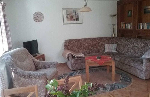 The apartments in the newly restored listed half-timbered house in Nehringen have been awarded 4 stars. Nehringen is a small idyllic place directly on the Trebel, 12 km from the A20, exit Triebsees. Behind the terraces on the back of the house is a large lawn that is very suitable for romping and playing. In 200m distance is a beautiful children's playground next to the water hiking rest area. In the "gray heron" is the canoe and bike rental. If you register, you can also have breakfast and a simple lunch here. A visit to the Andreaskirche and the Heimatmuseum under the guidance of Mr. Bergemann is very interesting. In the village there is a drinks shop and two rolling shopping carts. You will find a great deal of nature right on the doorstep: frogs, otters, owls, grass snakes, fish, bats, beavers, storks, sea eagles, ... The apartment Carpe diem is 60 square meters. The living room has a round corner with an armchair, satellite TV and radio CD player. The modern fitted kitchen is also in the same room. It has an oven, fridge with freezer, dishwasher and has a coffee and coffee pad machine, kettle and toaster. There is a dining table with six chairs. On the ground floor there is a bedroom with a double bed (1.80mx 2.00m). The second bedroom (bed: 1.40mx 2.00m) on the 1st Floor is accessible through a pine door and a narrow staircase from the kitchen. The bright bathroom with shower and toilet is on the ground floor.