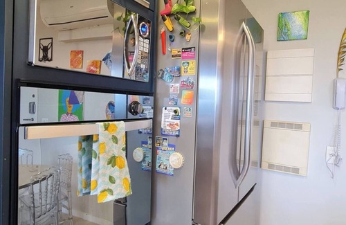 Feel the comfort and sophistication of this modern apartment in Barra Olímpica. With a balcony offering spectacular views of the Barra skyline and mountains, the space is perfect for relaxation. The master suite features premium bedding, and the living room converts into a bedroom. The open-concept kitchen with an exotic marble island adds to the elegant design. Spacious, airconditioned, and powered with highspeed internet, 2 full baths, beach essentials, 2 bikes, and more for your convenience.