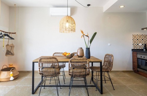 In a typical coastal village, between the beach and the countryside, you'll find this charming house! A "boutique" pool, common to the other two houses, overlooking green hills that lead to the ocean. A combination of barefoot glamour, timeless simplicity, comfort, and simple elegance invites you to kick back and slow down! A place with a peaceful way of life that is defined by its wild and pristine landscapes, rich history, and culture surrounded by nature!