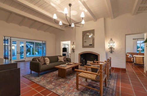 Casa de Estrella is the perfect destination for a small party or an intimate getaway, located on an oversized corner lot in prime Old Las Palmas. Modeled in 1930s classic Spanish style and lovingly restored by Bungalow Design of Manhattan Beach, this exclusive property has everything you need to stage the perfect weekend getaway. There are three charming bedrooms all containing king size beds and complete with ensuite bathrooms. Additionally, the den has a queen-size sofa bed and a full bathroom. The kitchen has white quartz countertops, stainless steel appliances, and a classic black and white floor design.