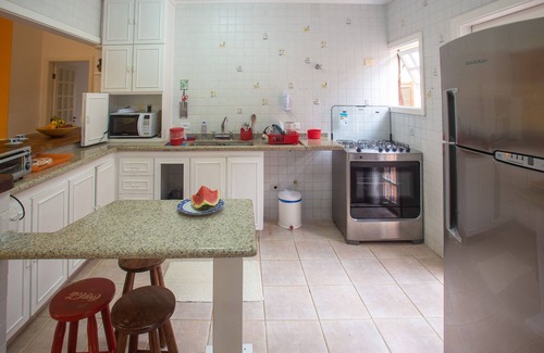 American kitchen, fully equipped (05 burner stove, two refrigerators with freezer, sandwich maker, microwave, blender, electric oven, wine glasses, etc.).